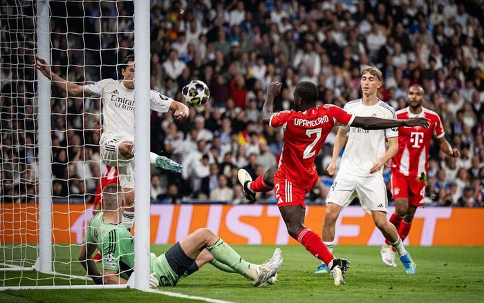随着主裁判一声哨响,拜仁就在伯纳乌压着皇马猛攻,第1分钟莱默尔就完成一脚远射,可惜没有压住直接飞出底线,9分钟之后,于帕梅卡诺门前近在咫尺的打门,被卡雷拉斯门线解围,扛住南大王猛攻的皇马,第16分钟和第18分钟由姆巴佩和维尼修斯完成了两脚中目标的射门,但都被诺伊尔神勇扑出。